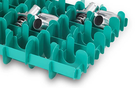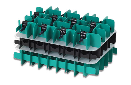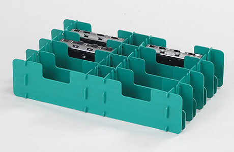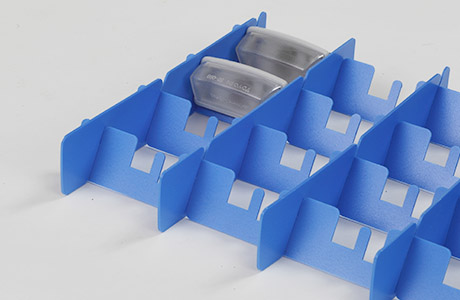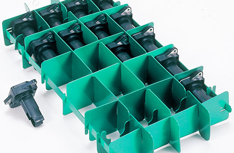 【仕切り板に緩衝材を貼って、塗装後の製品を安全に搬送。】採用事例NO.16