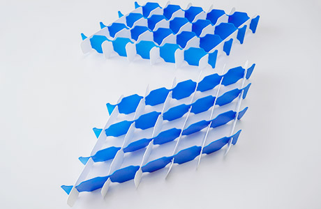 その設計技術の積み重ねで、複雑で細かく小さな部品でも、輸送時にしっかりと製品を守ることに加え、物流コスト、仕切りや緩衝材の廃棄物に関わるコストや廃棄にかかる時間削減を課題として製品開発に取り組んでまいりました。