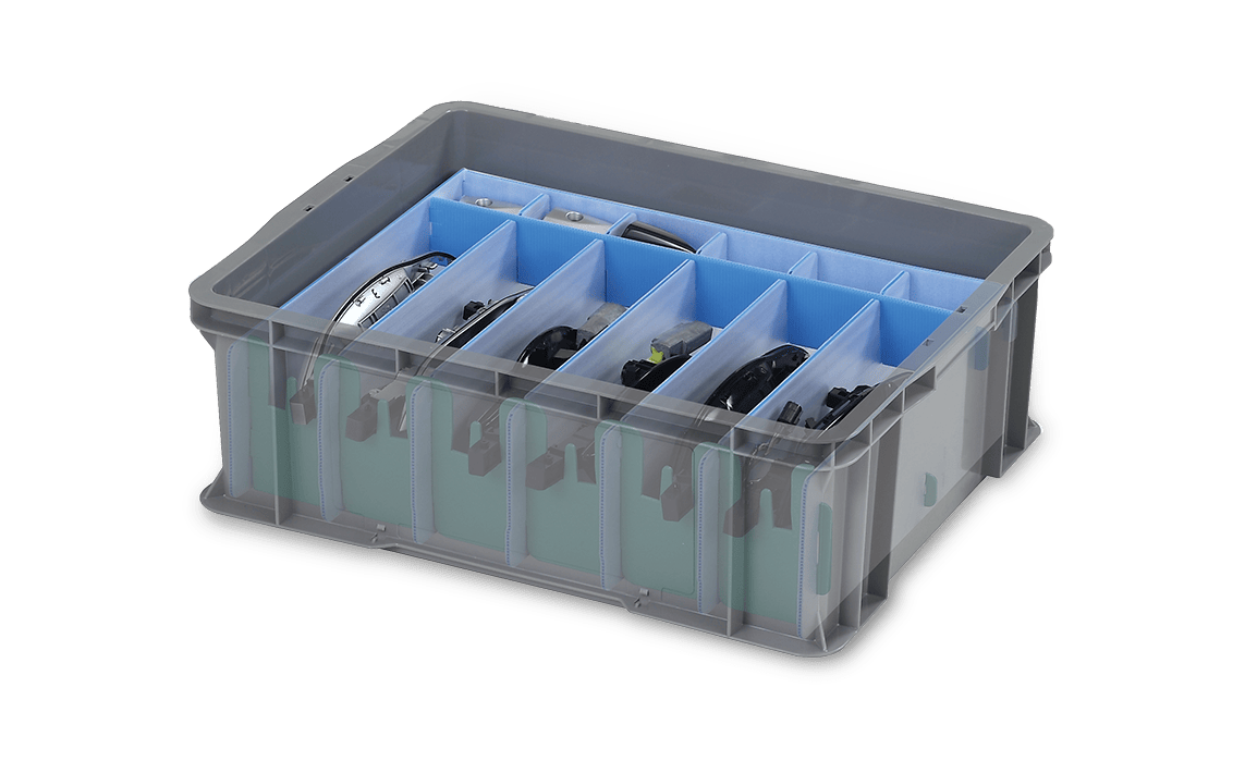 繰り返し使える《FLシリーズ》の折りたたみ仕切りで、ワンウェイ輸送で発生していた廃棄物をなくしコスト削減を実現します。